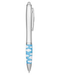 • Retractable curvy Plastic barrel ballpoint pen with cloud or technology theme stock art comfort grip